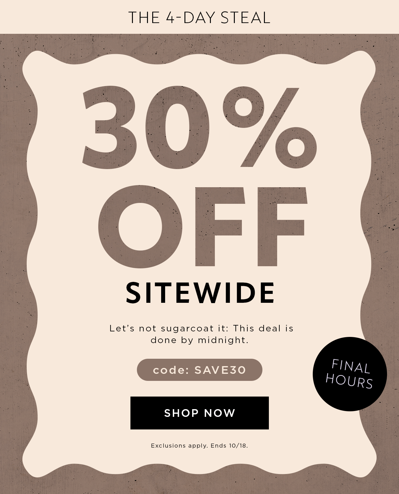 Final Hours, Final Chance: 30% OFF SITEWIDE