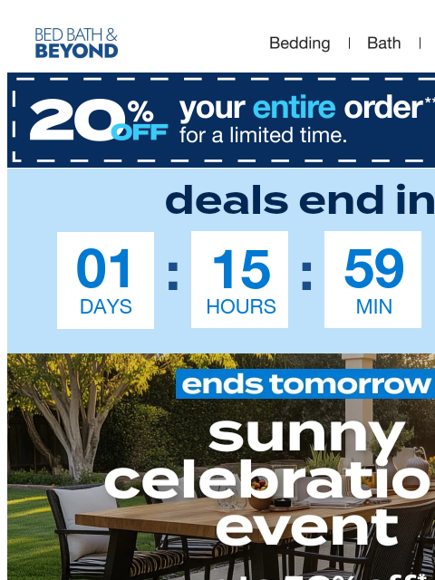 Bed Bath & Beyond, Beyond, Welcome Rewards, Overstock, and Overstock.com are trademarks and service marks of Beyond, Inc. Any trademarks used in connection with products or services appearing on this email or the website are the property of their respective owners. See Terms & Conditions for more information. |