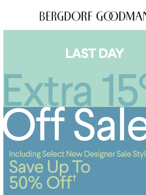 ** Online and in-store. Offer may differ in store. Please see your sales associate for store details. Savings off original prices. Select merchandise only. Savings will be reflected at checkout. Interim markdowns may have been taken. Some exclusions may apply. No adjustments for prior sales. Offer not valid on prior purchases; promotion does not apply to prior purchases. Bergdorf Goodman reserves the right to change or cancel this promotion at any time.