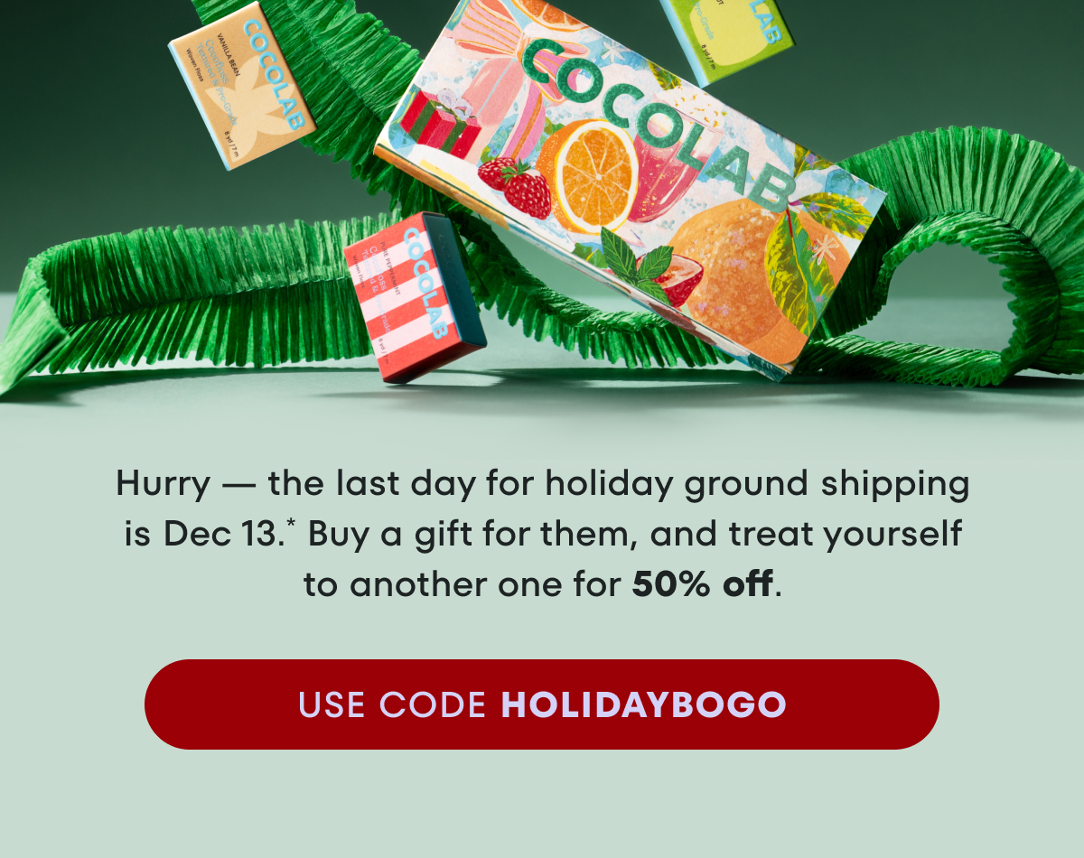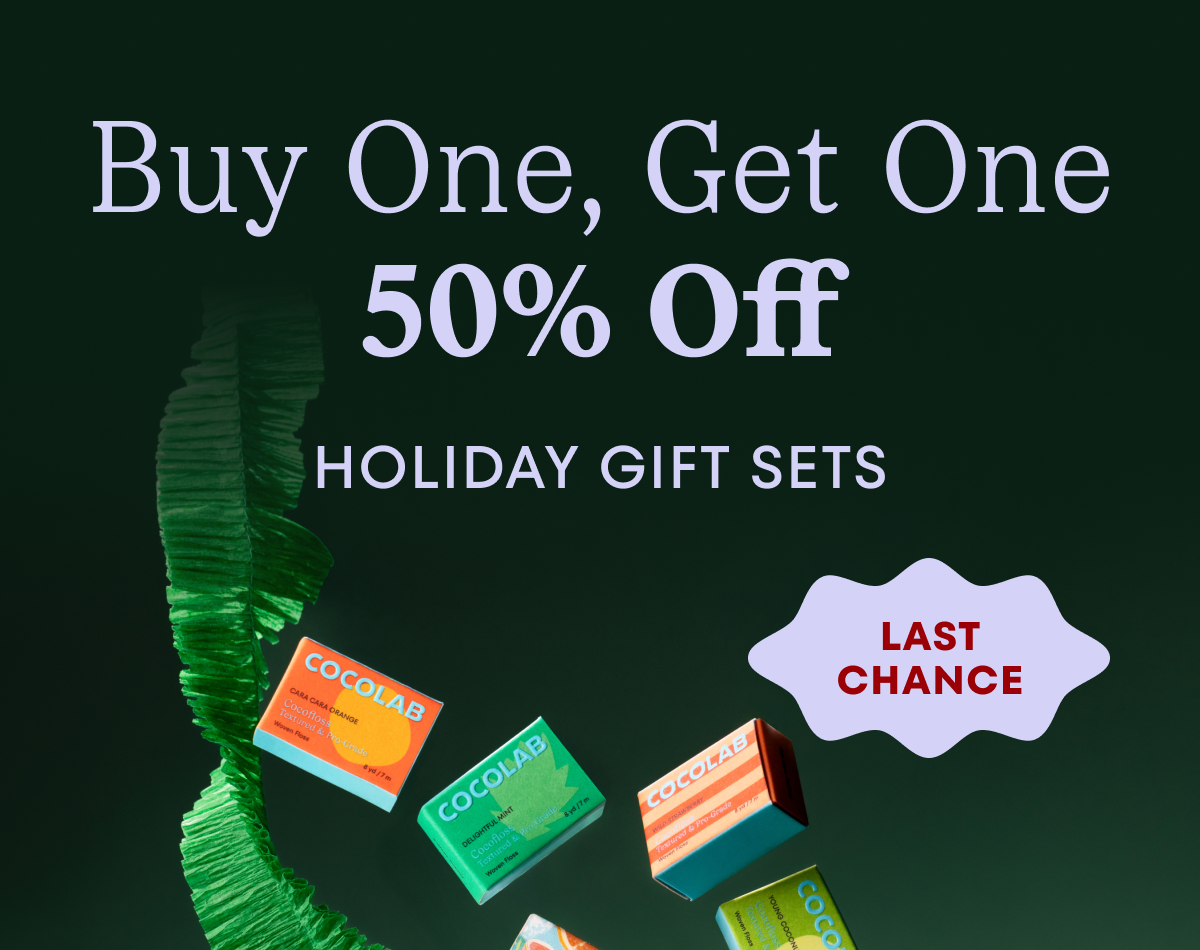 Use code HOLIDAYBOGO for 50% Off Twilights Delights Cocofloss Set or Merry Minis Cocofloss Gift Set. To redeem, add two qualifying sets (Twilights Delights or Merry Minis) to your cart. The item of equal or lesser value will automatically be discounted 50% off at checkout when the code is applied. Applies to one-time purchases. Cannot be used on subscription orders. Cannot be combined with other discounts or COCOLAB rewards. Deal ends on 12/13/2025 While supplies last.