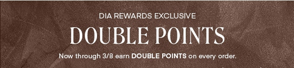 Offer valid 3/3/25 – 3/8/26. Dia Rewards members earn double on qualifying purchases. For online purchases you must be logged into your Dia Rewards account at the time of purchase to be eligible for this offer. Double points not earned on shipping, taxes, or gift card purchases. For Dia terms and conditions visit shop.dia.com/rewards/