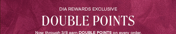 Offer valid 3/3/25 – 3/8/26. Dia Rewards members earn double on qualifying purchases. For online purchases you must be logged into your Dia Rewards account at the time of purchase to be eligible for this offer. Double points not earned on shipping, taxes, or gift card purchases. For Dia terms and conditions visit shop.dia.com/rewards/