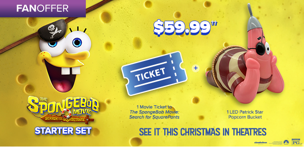 â â Search for SquarePants Starter Set is non-refundable. Domestic shipping will be added at checkout. Limited time offer. While supplies last. Movie ticket is non-refundable and non-exchangeable. Fandango reserves the right to modify or cancel this offer at any time and without notice. Popcorn not included. You must be 18 years of age or older