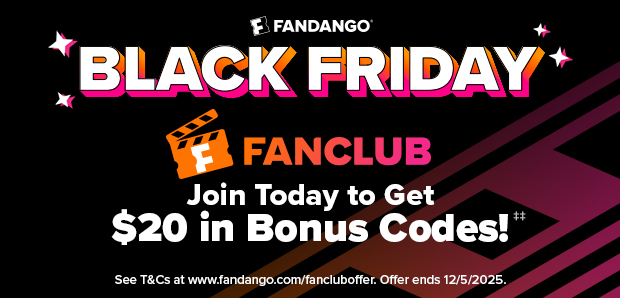 âĄâĄThe âJoin FanClub and Get $20 in Bonus Codesâ offer (the âOfferâ) is valid starting November 24, 2025, for a limited time only. To qualify, you must enroll in a paid Fandango FanClub membership either through Fandango.com/fanclub or by adding FanClub to your cart during ticket checkout, where the Offer will be automatically applied. This Offer is not valid for current FanClub members. Eligible customers will receive two (2) promo codes via email: one (1) $10 promo code valid toward a Fandango movie ticket purchase, and one (1) $10 promo code valid toward a movie or TV episode rental or purchase on Fandango at Home. If you join FanClub with a paid membership (no free trial), the promo codes will be delivered within 24 to 48 hours after your membership begins. If you opt into a 7-day free trial, the promo codes will be sent after your trial ends and your membership automatically converts to a paid membership. To be eligible, you must be an active, paying FanClub member at the time the Offer is delivered and at the time you redeem the promo codes. The Fandango promo code is valid for up to $10 off one ticket order for any movie at a participating Fandango theater and must be redeemed by January 31, 2026. The code is one-time use only and must be redeemed on Fandango.com or via the Fandango app. It cannot be used at theater box offices. If the cost of the ticket and any associated fees exceeds $10, the user is responsible for the difference. The code has no residual value, is non-transferable, and cannot be replaced if lost or stolen. It has no cash value except as required by law and is void where prohibited. It cannot be combined with any other offers or promotions. Limit one code per person. Offer valid in the U.S. only (excluding U.S. territories and where prohibited). The Fandango at Home promo code is valid for up to $10 off a single rental or purchase transaction of a movie or TV episode on Fandango at Home and must also be redeemed by January 31, 2026. The code is one-time use only, and any unused value is forfeited. If the total cost exceeds $10, the user is responsible for the difference. The code is non-transferable, cannot be combined with other offers, has no cash value (except as required by law), and cannot be replaced if lost or stolen. Offer valid in the U.S. only (excluding U.S. territories and where prohibited). Taxes may apply. Adjustments to prior purchases will not be permitted. Fandango reserves the right to withdraw or modify this Offer at any time, in its sole discretion and without notice. Use of the promo codes is subject to Fandangoâs Terms and Policies and FanClub Program Terms.