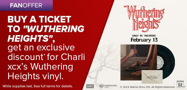 *Limited time offer. Log into your account on Fandango.com or the Fandango app between 9am PT on 1/14/26 and 11:59pm PT on 2/15/26 and purchase at least one movie ticket to "Wuthering Heights." Purchaser will receive a post purchase email containing a link (“Link”) to the Atlantic website that is good for 15% off the purchase of the Charli xcx Wuthering Heights vinyl. Link expires, and can no longer be used, at 11:59pm PT on 2/18/26. Limit 1 purchase per Link. You must have, and be logged into, your Fandango account to receive the Link. Fandango is free to join; you must be 18 years of age or older to create a Fandango account. This offer is subject to Fandango’s terms and policies at www.fandango.com/terms-and-policies and the Link is subject to Atlantic's terms and policies, at https://www.atlanticrecords.com/terms-of-use.