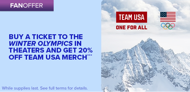 ***Limited time offer. Log into your account on Fandango.com or the Fandango app between 12:01am PT on 2/2/26 and 11:59pm PT on 2/22/26 and purchase at least one movie ticket to see the 2026 Winter Olympics in a participating Fandango theater. Purchaser will receive a post-purchase email containing a promotional code (“Code”) redeemable at the Team USA Shop website that is good for 20% off one (1) transaction on the Team USA Shop website. Code expires, and can no longer be used, at 11:59pm PT on 2/25/26. Limit 1 Code redemption per person. Code must be entered at the Team USA Shop website to receive discount. You must have, and be logged into, your Fandango account to receive the Code. Fandango is free to join; you must be 18 years of age or older to create a Fandango account. This offer is subject to Fandango’s terms and policies at https://www.fandango.com/terms-and-policies and the Code is subject to the Team USA Shop's terms and policies here. Exclusions, terms and conditions apply. Offer may be modified or terminated at any time without notice. Due to restrictions, some products may not be available for purchase or shipment from Team USA Shop website to certain countries (including Australia).