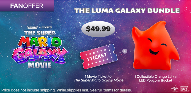‡The Luma Galaxy Bundle is non-refundable. Domestic shipping will be added at checkout. Limited time offer. While supplies last. Movie ticket is non-refundable and non-exchangeable. Fandango reserves the right to modify or cancel this offer at any time and without notice. Popcorn not included. You must be 18 years of age or older to purchase a bundle. The Orange Luma LED Popcorn Bucket will begin shipping in April. Please use a physical U.S. address where the Orange Luma LED Popcorn Bucket shipment can be delivered. Once carrier confirms delivery, Fandango is not responsible for lost or stolen deliveries. See full terms and conditions below for each item included in The Luma Galaxy Bundle. See full terms and conditions at https://fandan.co/TheLumaGalaxyBundle.