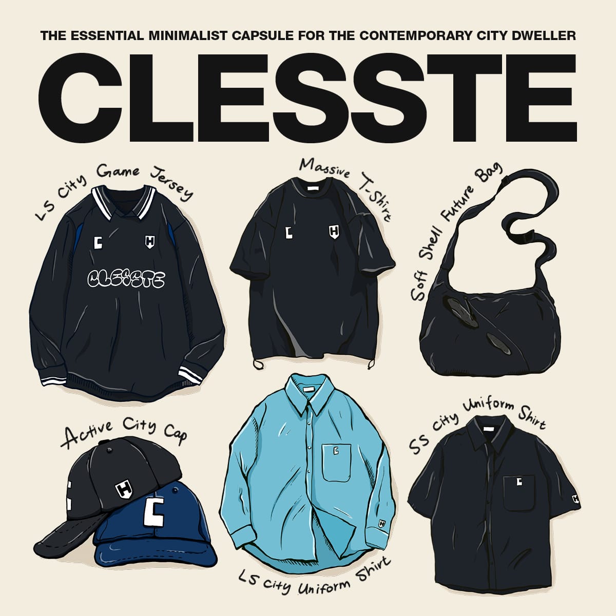 A highly coveted, exclusive 7-piece collection. This capsule is a masterclass in elevated minimalism, perfectly embodying the iconic Japanese city boy wardrobe aesthetic. An essential for the modern urban explorer — a true love letter to the cityboy style.
