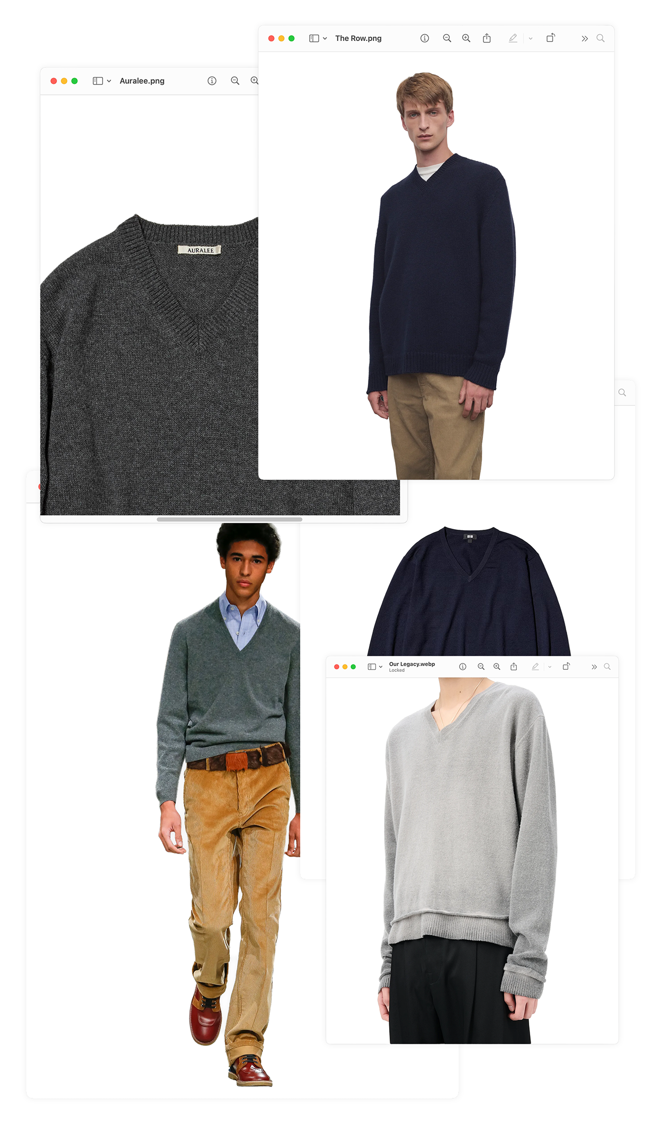 | Can one ever avoid opening a shopping newsletter without a pretend-anecdote about items one “simply” “cannot” “live” “without”? And yet, as Highsnobiety’s shopping editor, I’ve found myself considering what really is the one dear product in my closet that I wouldn't want to miss as we move through this peak shopping season. This time of year and otherwise, my answer is and will always be my navy blue V-neck sweater. This knit in question, a thrifted cashmere-merino blend from Italy, is a daily grab of mine — whether slouchily layered, crossbody-tied, over-the-shoulder, or balled up in my work tote, gym bag and carry-on.