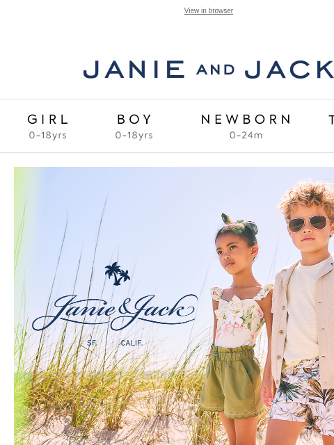 Offer valid online 4/10/2025 from 12:00am PT through 4/14/2025 11:59pm PT on sale merchandise only. Excludes final sale, third-party merchandise, curated newborn gift boxes, and select pajamas. Discount applies to merchandise only. Not valid on gift cards, shipping & handling charges, taxes, gift packaging, in-store phone orders or donations. No adjustments on previous purchases, and purchases made with this offer are not eligible for a price adjustment. Not valid for cash or cash equivalent. Cannot be combined with other offers or discounts including the Janie and Jack employee discount. Offer subject to change or cancellation at any time. Not valid at Janie and Jack Stores and Janie and Jack Outlets.