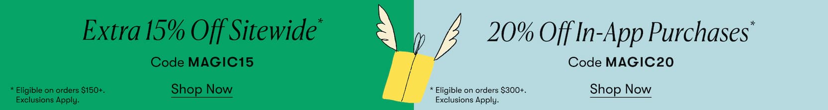 *Promo Code Rules: Use promo code MAGIC15 for 15% off $150+ sitewide or MAGIC20 for 20% off $300+ in-app. Cannot be combined with other promotions. Cannot be applied to orders already placed. Items marked as final sale cannot be returned. Code is valid until 11/06/25 at 4AM EST. Exclusions Apply.