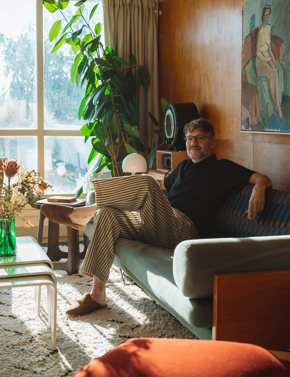Needless to say, we took a very inspiring tour a few weeks back. Tom showed us exactly what makes his home so special, and highlighted some of his favorite personal treasures -- from furniture pieces to eBay scores, while relaxing in his new Shearling Babas.