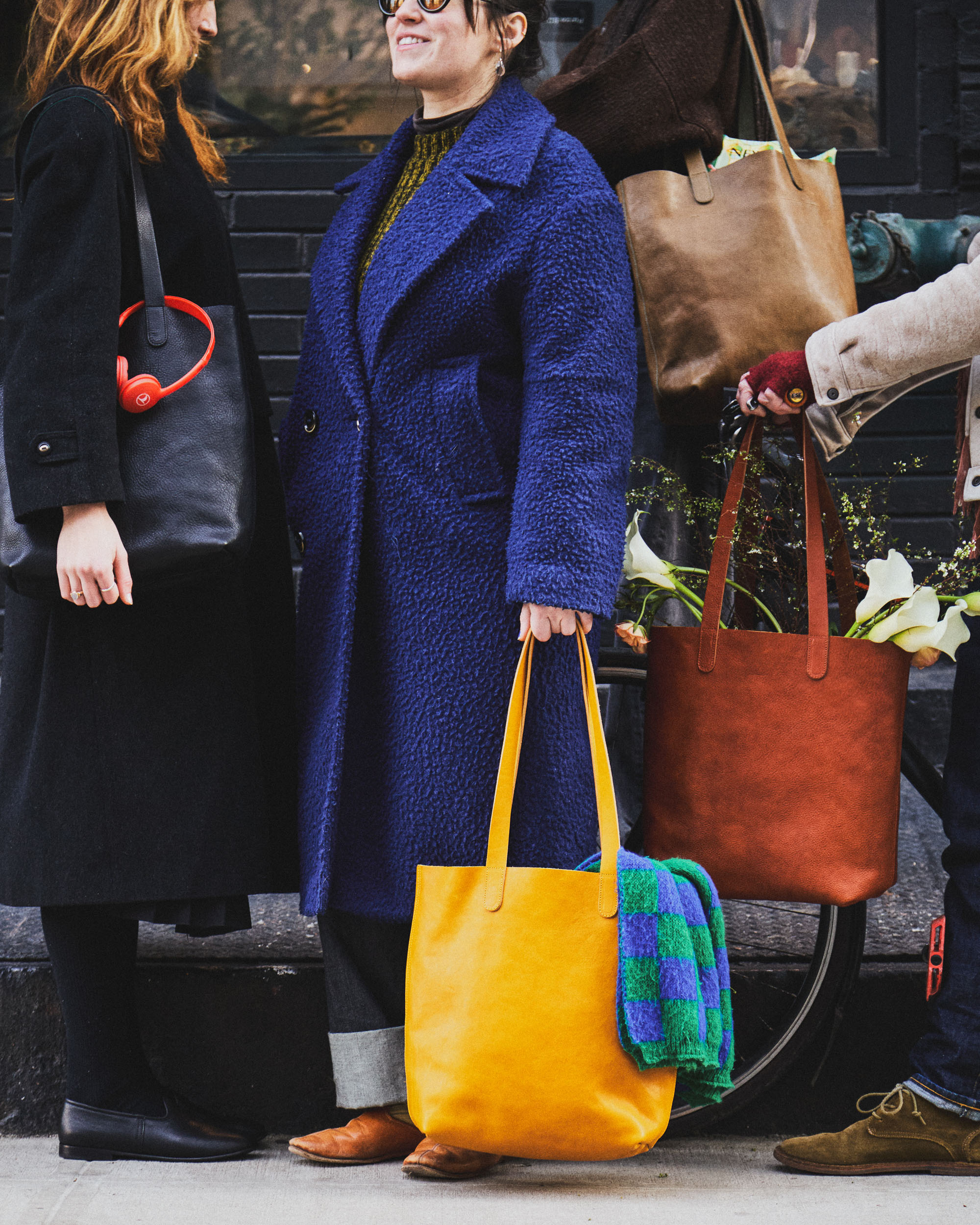 Our HQ team packed up all their things (laptops, magazines, beanies & scarves... a bouquet of flowers for mom!) and took the Traveler Tote out for a spin in SoHo. With its large capacity and durable straps (that stay in place!), it's the perfect tote not only for your daily commute, but also for travel.