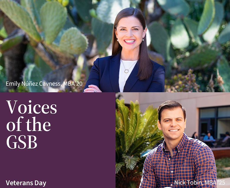 At Stanford Graduate School of Business, we’re honoring Veterans Day and National Family Caregivers Month by spotlighting the people who embody service every day. Hear from veteran voices in our community and listen to students share how they support one another in their caregiving roles.