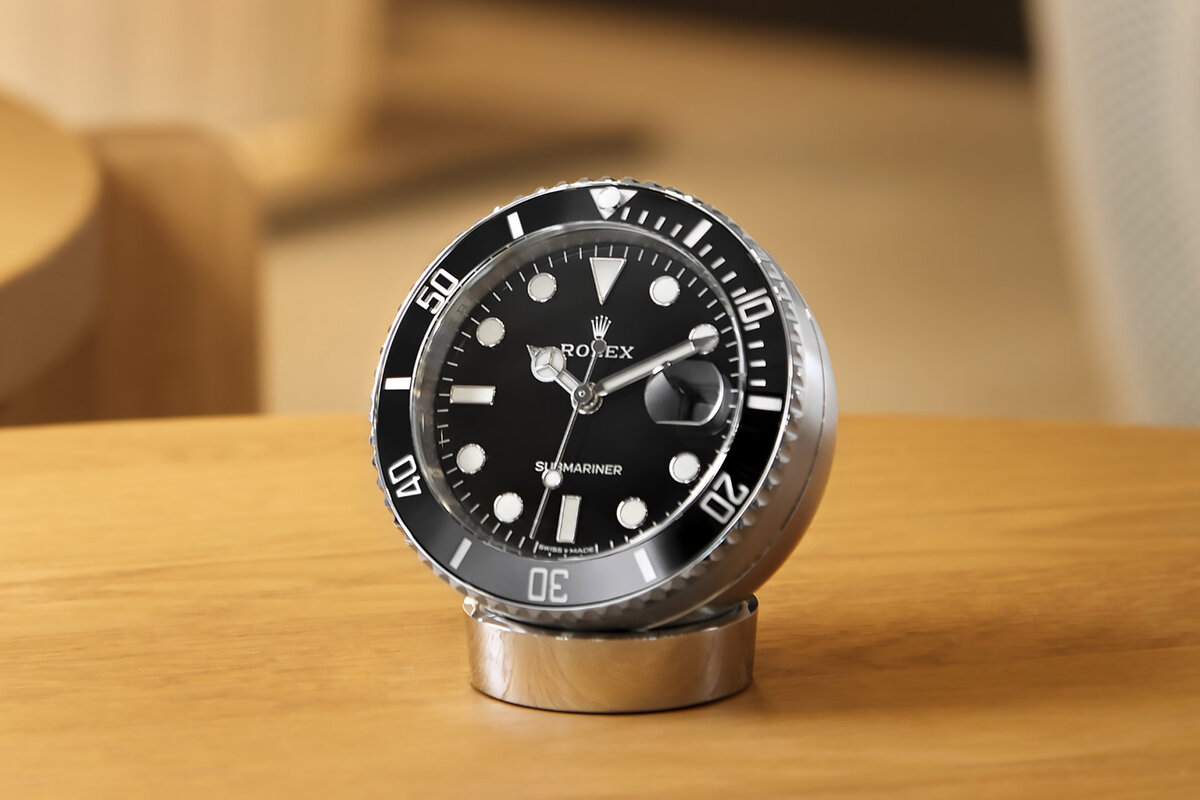 Bring the iconic design of Rolex's dive watch to the desk with this handsome, adjustable clock. $10,270.