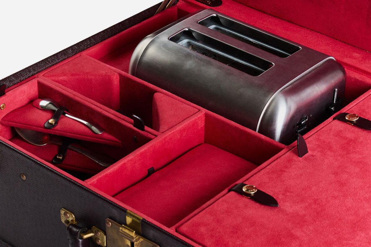 A bespoke Louis Vuitton trunk built around Karl Lagerfeld's breakfast ritual. $100,000+.