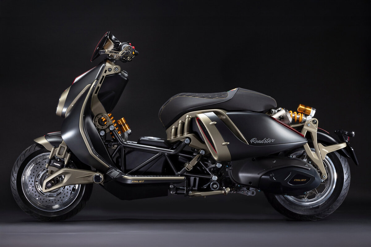 Italjet's Roadster 400 blurs the line between scooter and motorcycle with modern and retro influences. $450,000+.