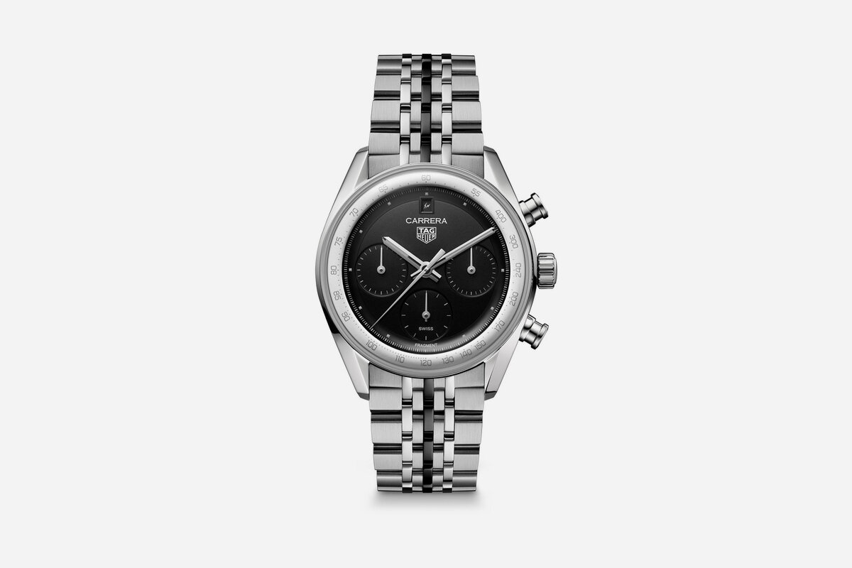 TAG Heuer once again teams with Hiroshi Fujiwara, this time on a monochromatic Carrera Chronograph. $9,050.